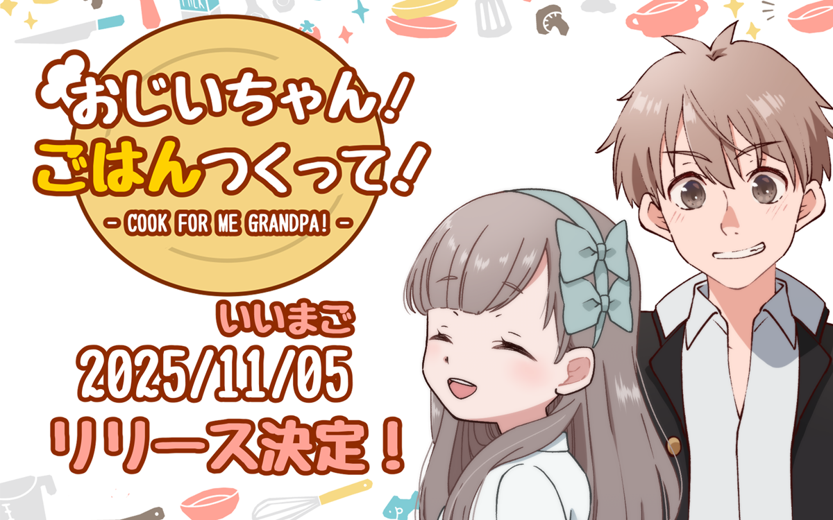 個人開発者かめきちは、可愛いAI孫に料理を自由にふるまう、新しい料理シミュレーションゲーム『おじいちゃん!ごはんつくって!』の製品版を、2025/11/05(いいまごの日)にSteamで配信することを発表した。