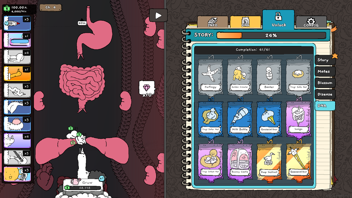ステージをクリアすると「カルシウム」を獲得し、地底に広がる根の強力な効果を解放できる。