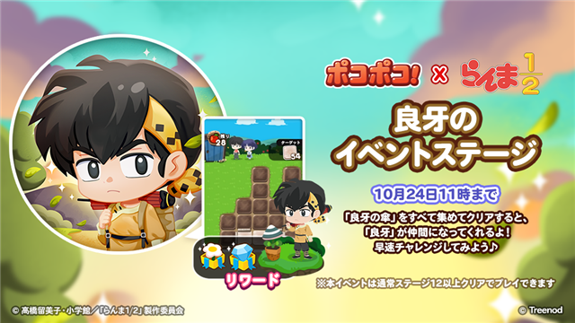 LINEヤフー<4347>は、3マッチパズルゲーム『LINE ポコポコ』(iPhone・Android対応/無料)のサービス開始から11周年を記念したコラボレーションの第2弾として、TVアニメ『らんま1/2』とのコラボレーションイベントを本日より開催することを発表した。