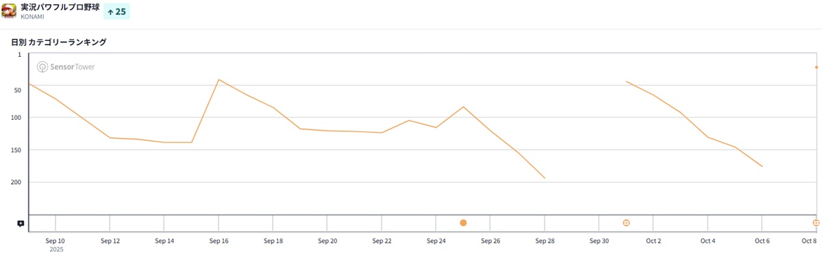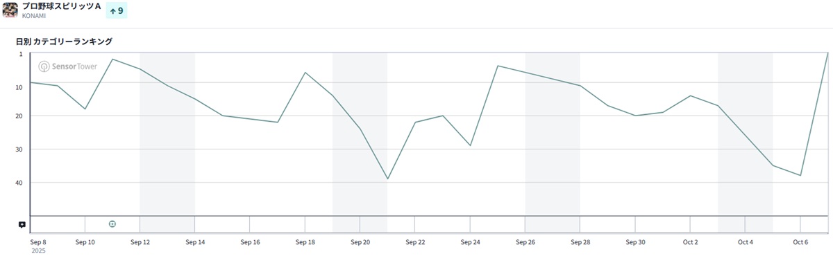 『プロスピA』は10月7日より、Sランクの山本由伸、松井裕樹が期間限定で登場する「ワールドスターセレクション」や「2025 Series1 OB イチロー」が期間限定で再登場する「イチロー再臨スカウト」を開催しており、売り上げを伸ばしたようだ。