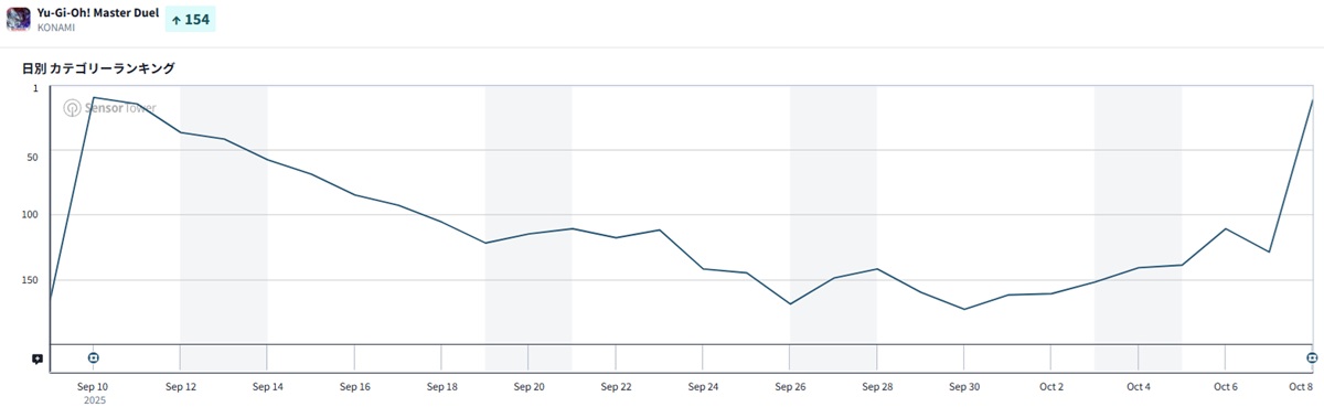この日、129位から12位と大きく順位を上げたのが、コナミデジタルエンタテインメントの『遊戯王 マスターデュエル』だ。