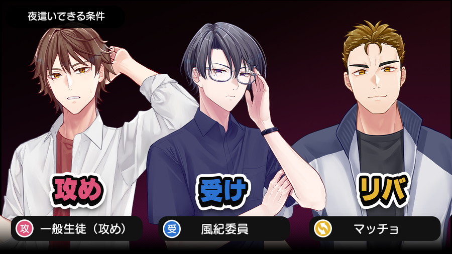 ・「受け」「攻め」といった属性を推理に活用する。夜這いには相手の生徒が好みの属性でなければならず、ノンケたちは誰がどの属性か推理することでドスケベを特定できる。