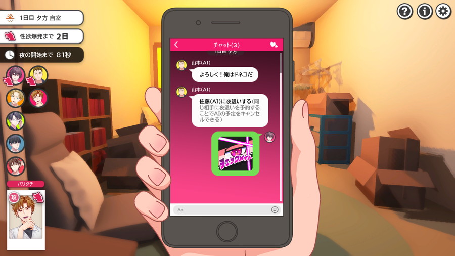 ・ノンケ陣営はドスケベ陣営を見つけ出し「謹慎」させることで、ドスケベの性欲を爆発させ、寮から追い出すことができる。