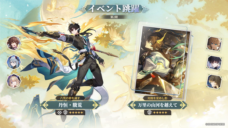本日10月15日より、イベント跳躍「八荒の邪を滅す」を開催した。期間中、限定星5キャラクター「丹恒・騰荒(存護・物理)」(CV:伊東健人)の出現率がアップする。同時開催のイベント跳躍・光円錐「光陰を定めし影」では、限定星5光円錐「万里の山河を越えて(存護)」の出現率がアップする。