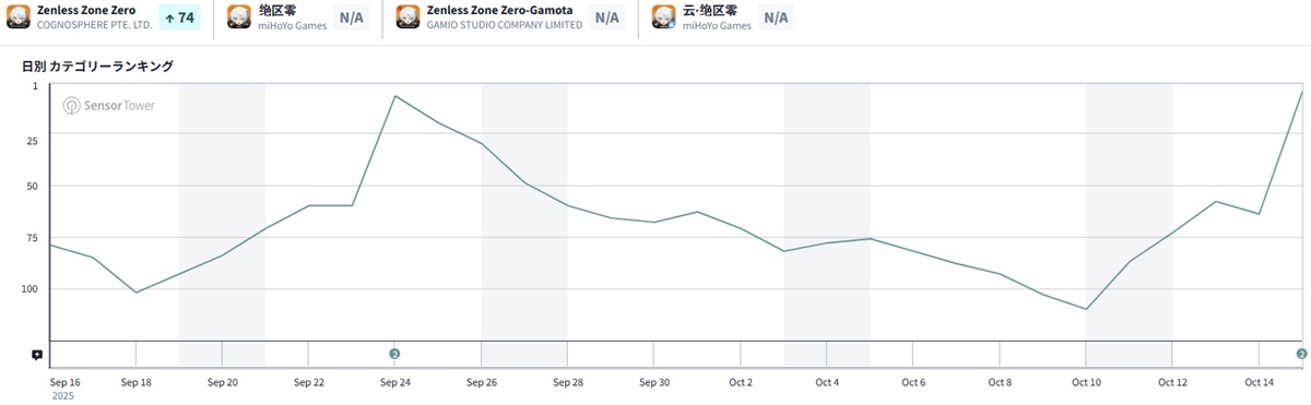 HoYoverseの『ゼンレスゾーンゼロ』も64位からトップ5入りと好調だ。