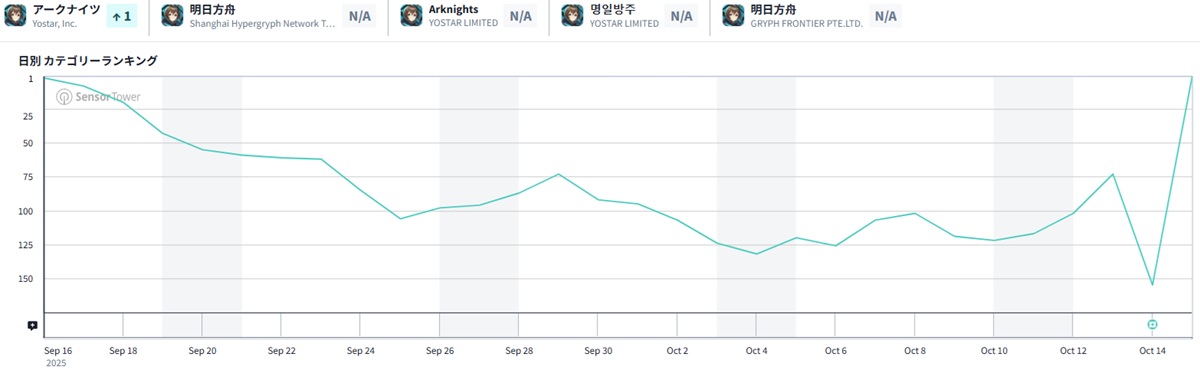 | 1 | 155 | ↑154 | アークナイツ | Yostar |