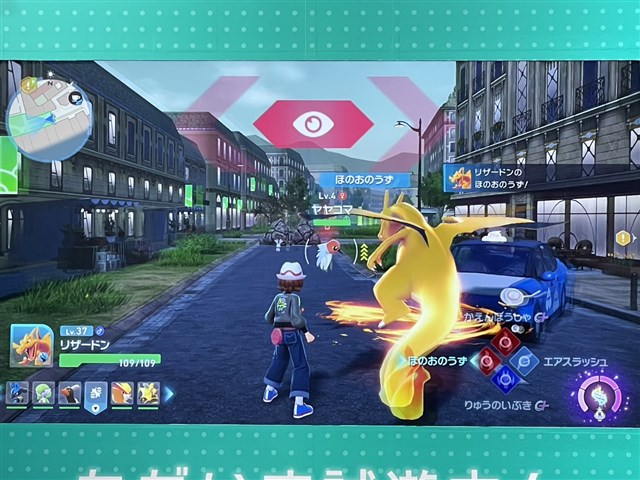 ▲ポケモンに近付くと、ZLボタンでロックオンが可能になる。ロックオン中はA・B・X・Yでパートナーポケモンの技を発動できる。なお、技にはそれぞれクールタイムがあり、一定時間経過しないと同じ技は出せないようになっている。