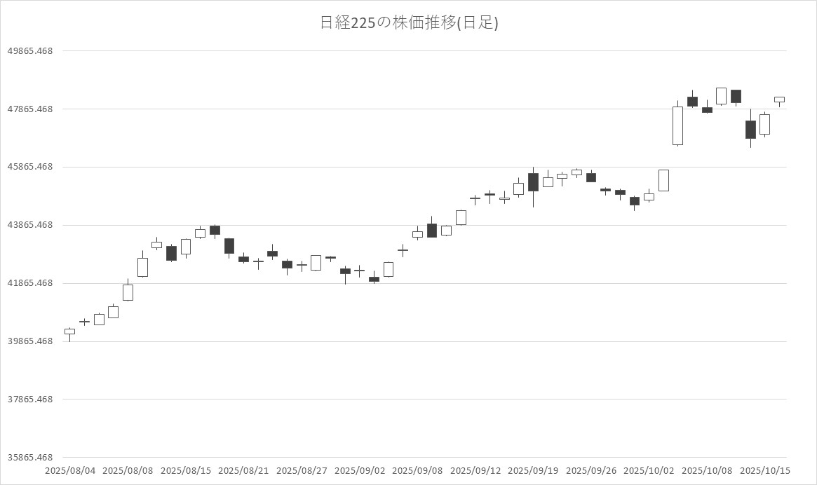 10月16日の東京株式市場は続伸。日経平均株価は、前営業日比597円17銭高の4万8269円84銭でこの日の取引を終えた。自民党と日本維新の会による政策協議の開始を受けて政局不安の後退を背景に半導体関連を中心に物色され、一時606円高まで買われる場面があった。