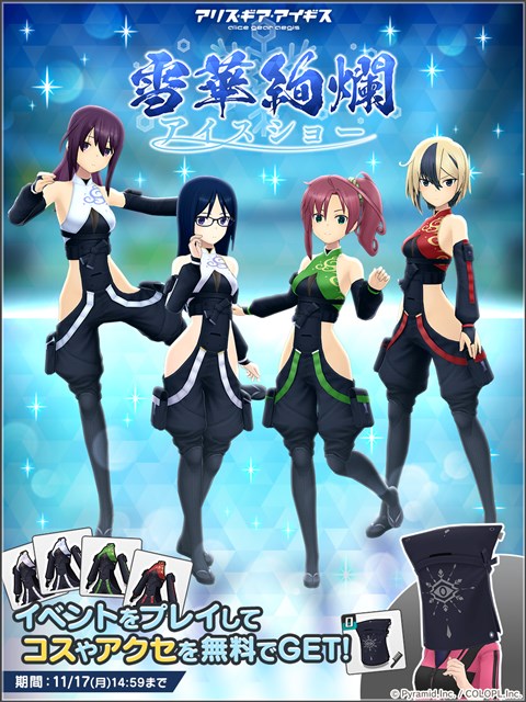 10月16日より、新イベント「雪華絢爛 アイスショー」が開催中。イベントをプレイして「雪華札」を集めると、忍者モチーフの新コスチュームやアクセサリーなどの報酬と交換できる。アイススケートに挑戦するアクトレス達のエピソードを、ぜひ楽しもう。