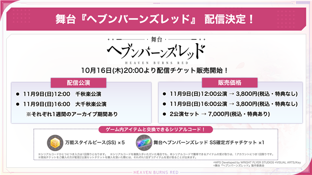 ※詳細や続報は舞台『ヘブンバーンズレッド』公式サイトで確認できる。
