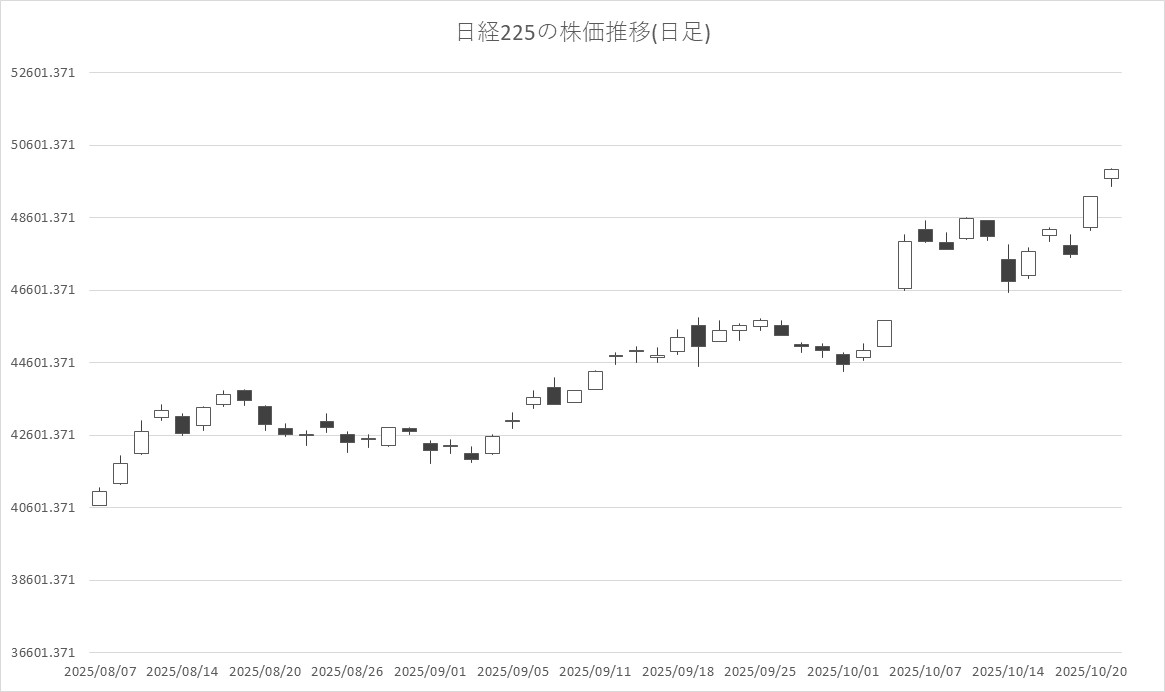 10月21日前場の東京株式市場は続伸。日経平均株価は、前営業日比744円31銭高の4万9929円81銭で午前中の取引を終えた。日経平均は史上最高値を更新した。高市早苗自民党総裁が本日午後にも首相に選出される見通しで期待による買いが入ったとのこと。前日の米国株高や円安も支援材料となった。