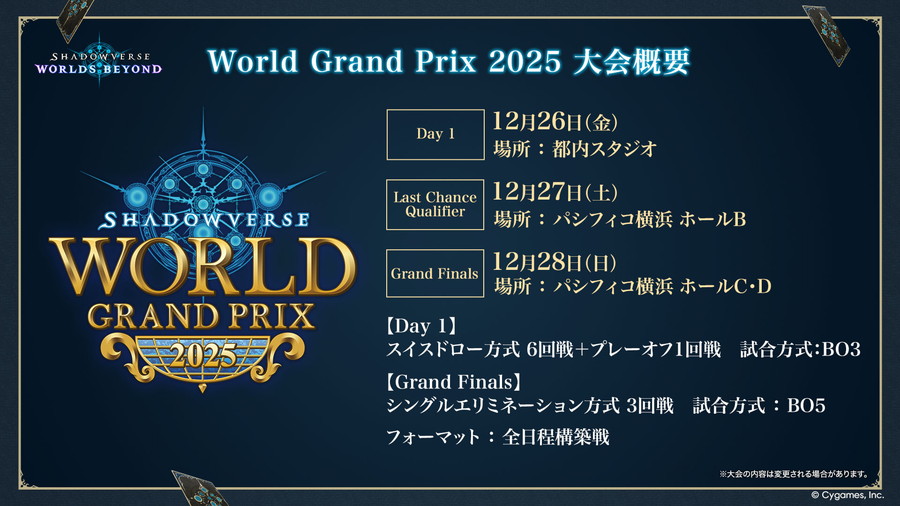 「Shadowverse World Grand Prix 2025」のキービジュアルを初公開した。また試合形式に関しても詳細を発表する。