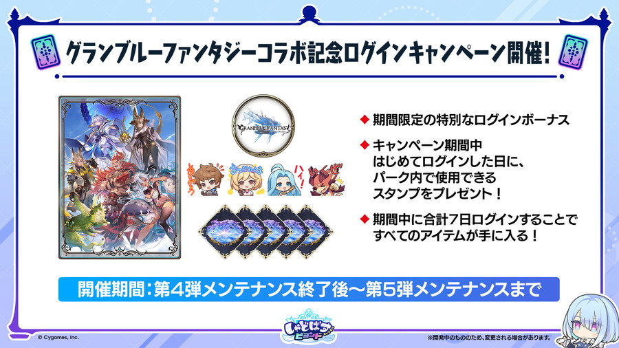『グランブルーファンタジー』とのコラボを記念して、特別なログインキャンペーンを開催する。キャンペーン期間中にログインすることで、1日1回カードパックチケットや、キービジュアルを使用したスリーブやエンブレムなどのアイテムを獲得できる。