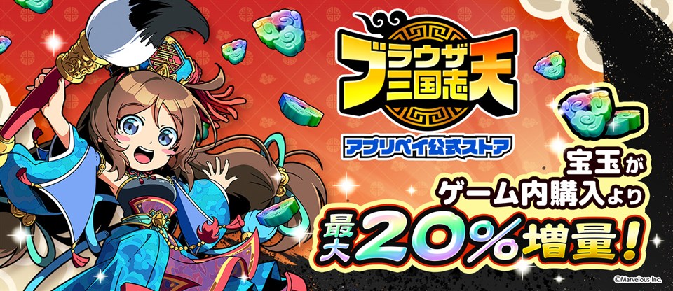 本作ではWEBサイト上でアイテムを購入することができる「アプリペイ」という決済サービスを導入している。「アプリペイ」では、宝玉がゲーム内購入よりも最大20%増量したお得なラインアップが販売中だ。アプリ内からは宝玉購入画面上部のバナーからアプリペイ公式ストアをひらくことができる。
