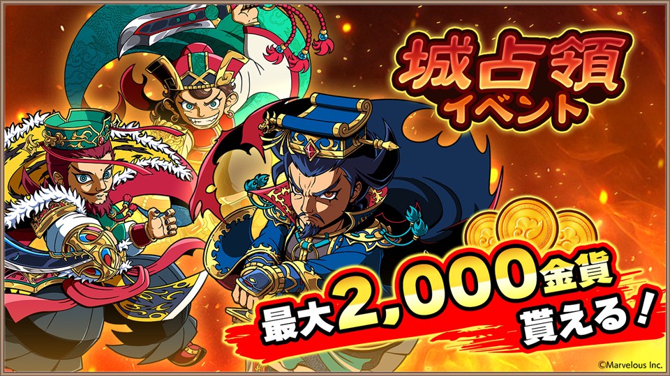 同盟の仲間たちと共に城を占領しよう。イベント終了時に同盟が占領している城の数に応じて、同盟員全員に最大2000金貨をプレゼント!