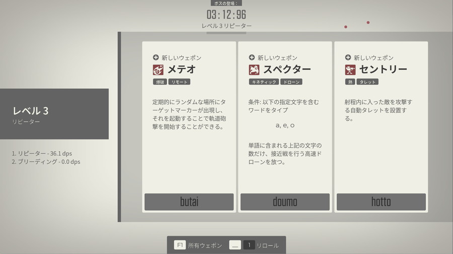 本作は、入力したワードで敵を倒すタイピングゲームで、正確さと速さが重要となる。ローグライク要素もあり、レベルアップごとに武器の強化やサブ武器の入手が可能。