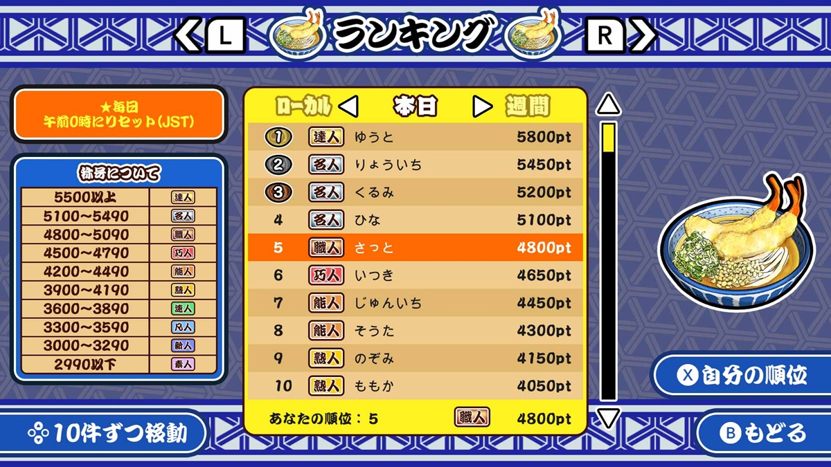 コシのある麺!出汁!天ぷら!注文通りのうどんをすばやく作って、極めろ!うどん職人!