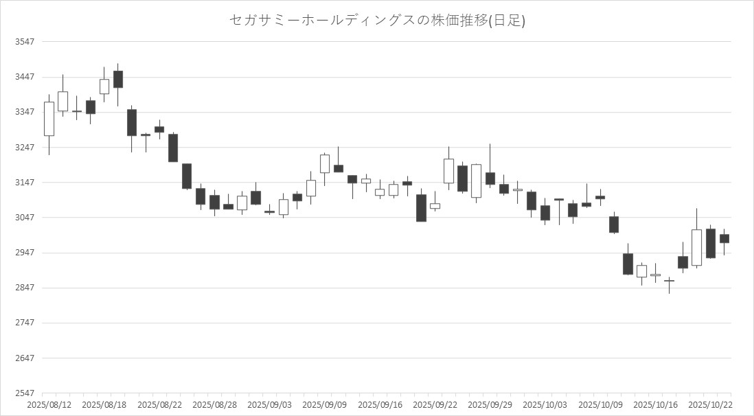 大手ゲーム関連を見ると、バンダイナムコHD<7832>、セガサミーHD<6460>、カプコン<9697>が高く、ソニーG<6758>、任天堂<7974>、コナミG<9766>、スクエニHD<9684>、コーエーテクモHD<3635>が安い。