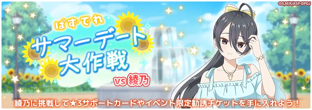 また、同日より特効キャラが活躍するイベント「ぱずでれサマーデート大作戦VS綾乃」を開催している。