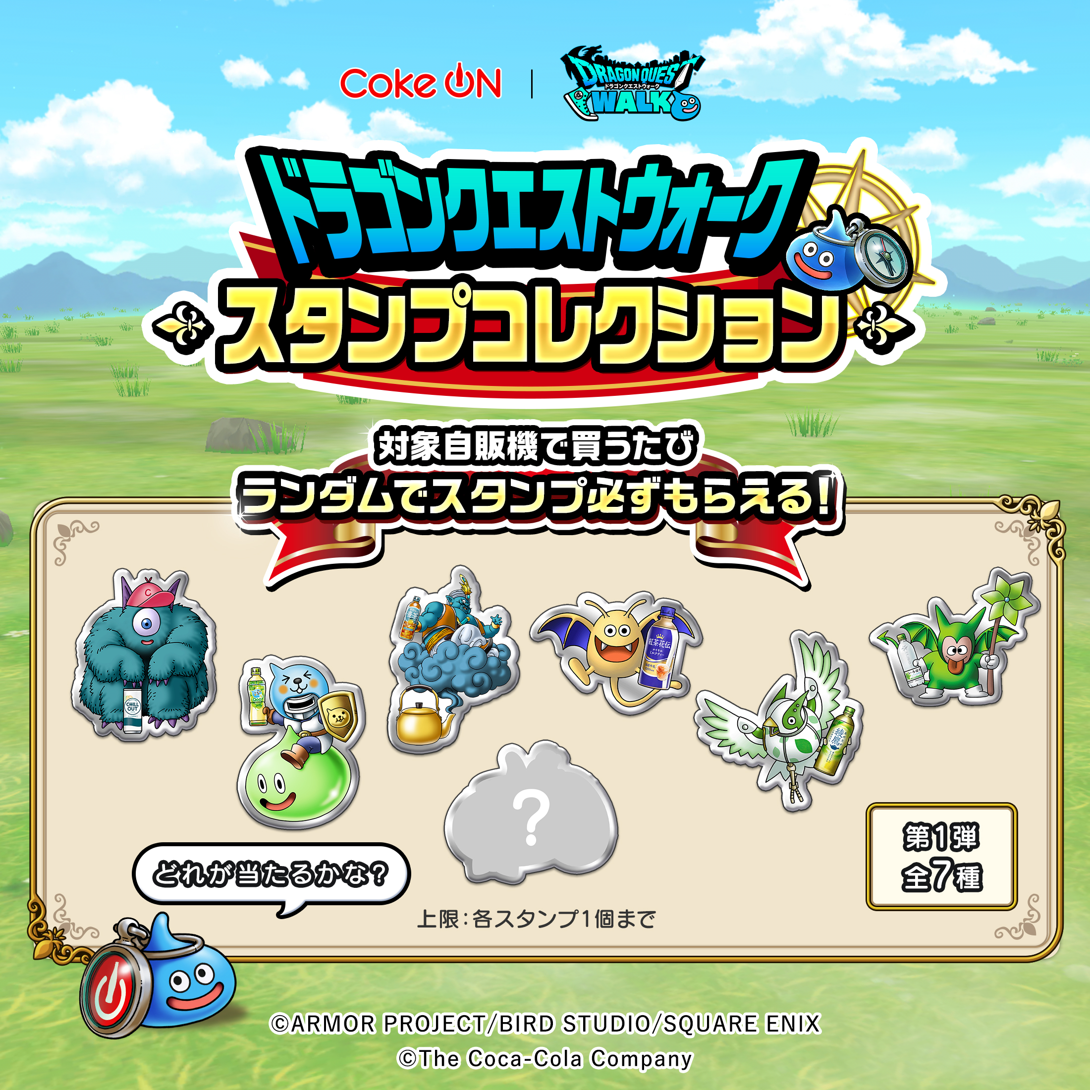 対象のCoke ON対応自販機で、「Coke ON」アプリを使用して製品を購入するたびに、通常のCoke ONスタンプ1個に加え、「ドラゴンクエストウォーク」でお馴染みの人気モンスター限定コラボデザインのCoke ONスタンプが、ランダムで1個もらうことができる。スタンプのデザインは第1弾では7種、第2弾では13種(第1弾スタンプを含む)と、多彩なモンスターデザインのスタンプを集めることができる。
