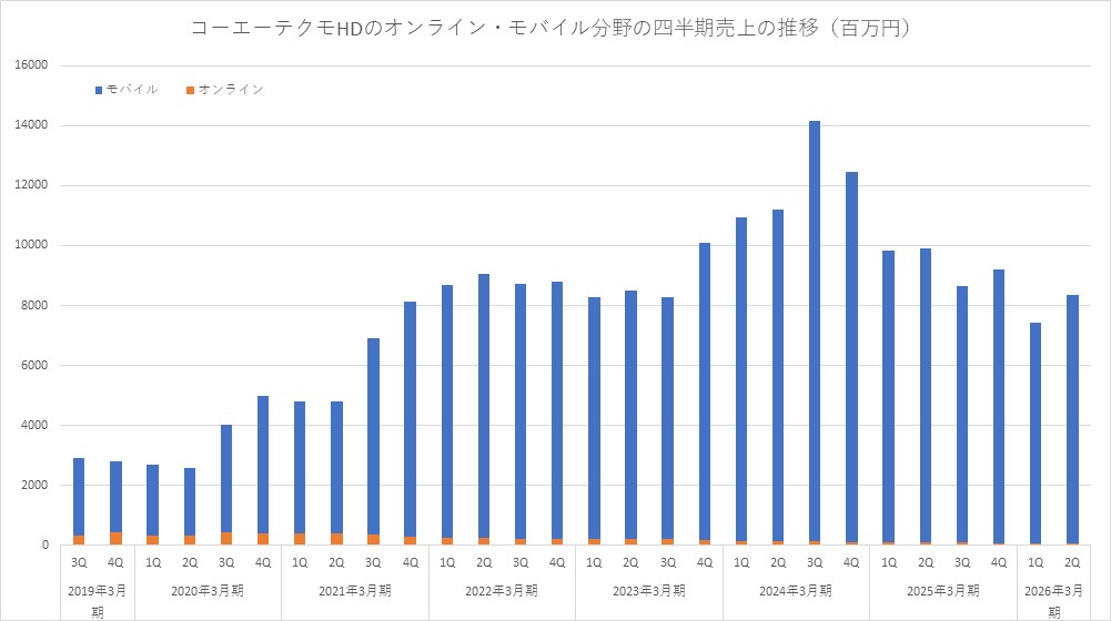 なお、オンライン・モバイルの四半期売上高の推移は以下の通り。