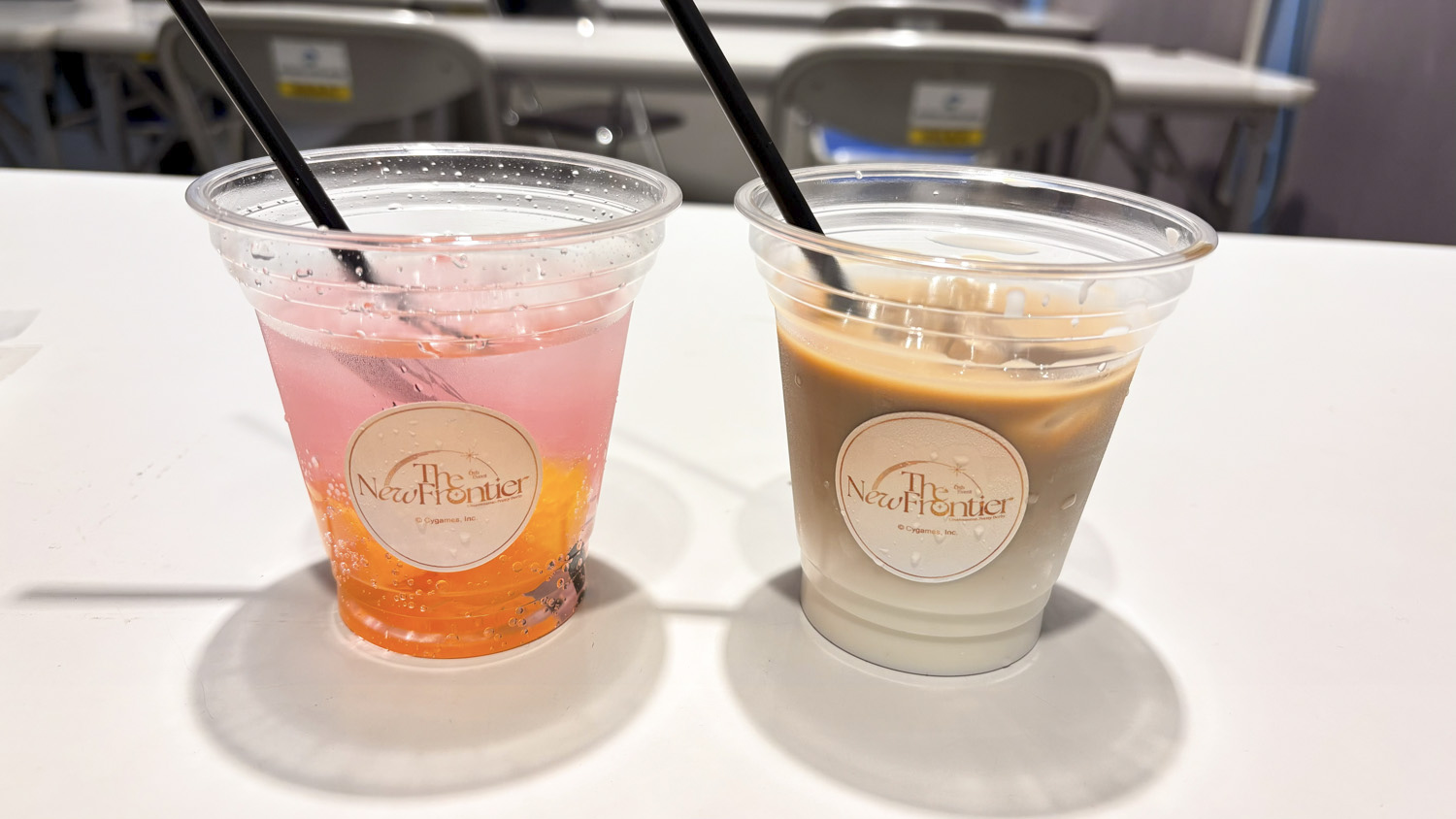 筆者はメニューの中から、「フサイチパンドラのピンクレモネード」と「ステイゴールドの黄金旅程ラテ」を購入。