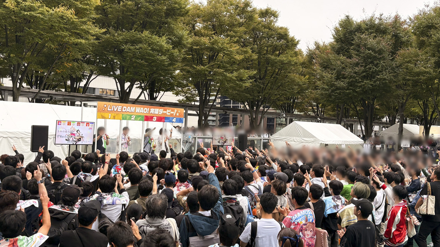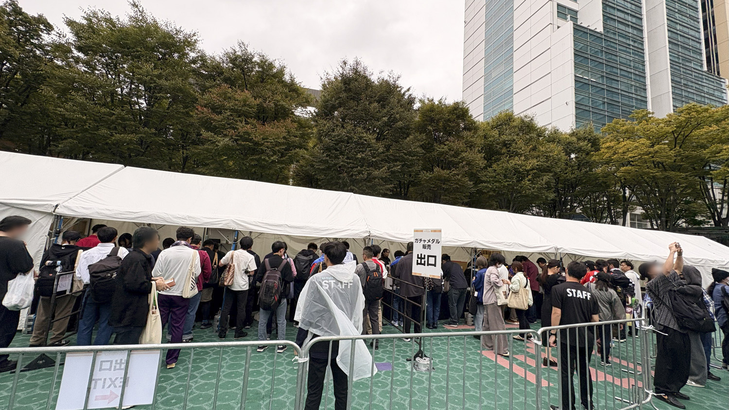 ライブレポート前に、まずはさいたまスーパーアリーナの会場目の前に位置するけやき広場で開催された『ウマ娘』のコラボイベントの様子をお届け。この日はあいにくの空模様となったが、アニメイトカフェ出張所の出店や、協賛ブース、リアルガチャコーナーなど、開場時間前から大勢のトレーナーたちが大きな賑わいを見せていた。