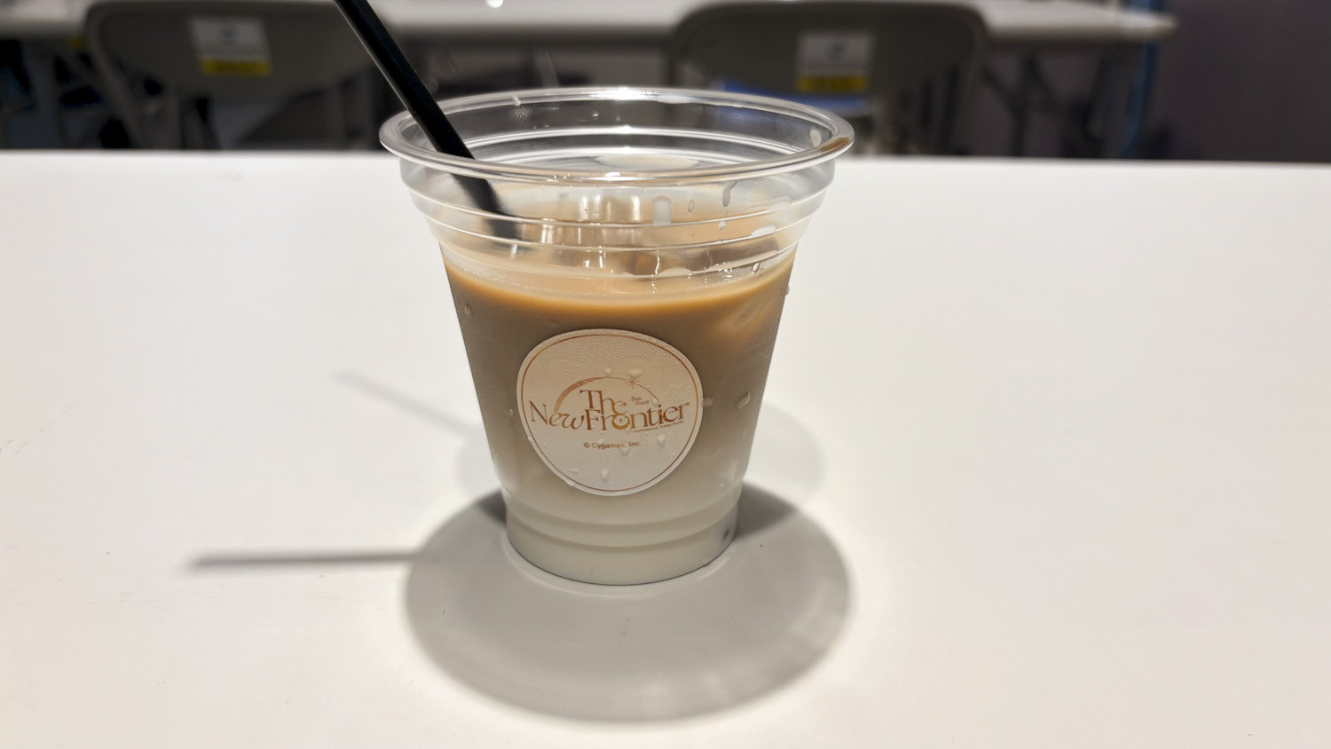 「ステイゴールドの黄金旅程ラテ」はコーヒーとミルクの二層が綺麗で、さらに金箔で見た目も豪華なドリンクだ。カフェラテにジンジャーシロップ……?と、予想がつかない味だったが、ほどよくジンジャーが効いてスパイシーな風味となっており、さわやかで飲みやすいカフェラテだった。