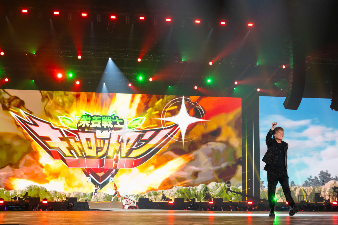 しかし、バトルの最中にキャロットマンは敵に捕まってしまう。そのピンチに駆けつけたのが、ビコーペガサスの勝負服を身にまとった田中さんだ。さらに、スペシャルゲストアーティスト・影山ヒロノブさんも参戦し、熱く燃える正義の心で「栄養戦士キャロットマン」を共に熱唱。最後は見事敵を蹴散らし、格好いい決めポーズで締めくくった。