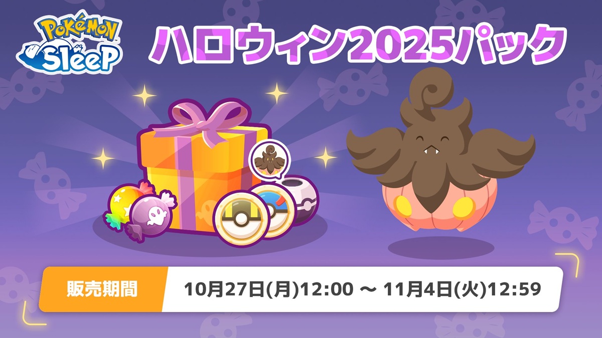 『ポケモンスリープ』は10月27日より、「ハロウィン2025パック」が購入可能になっている。こちらはポケモンたちへのプレゼントにぴったりなお菓子の詰め合わせで、新たに登場する「バケッチャのおこう」や「バケッチャのアメ」もばっちりラインナップされている。