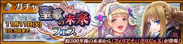 セガは、『チェインクロニクル第5部 ―未来への導標(しるべ)―』において、10月28日より「聖歌の未来 エピローグ」の配信を開始することを発表した。また、配信を記念して「フィリアナ(CV:佐倉綾音)」、「クリジェス(CV:井上麻里奈)」が新登場する“聖歌の未来フェス”を開催する。