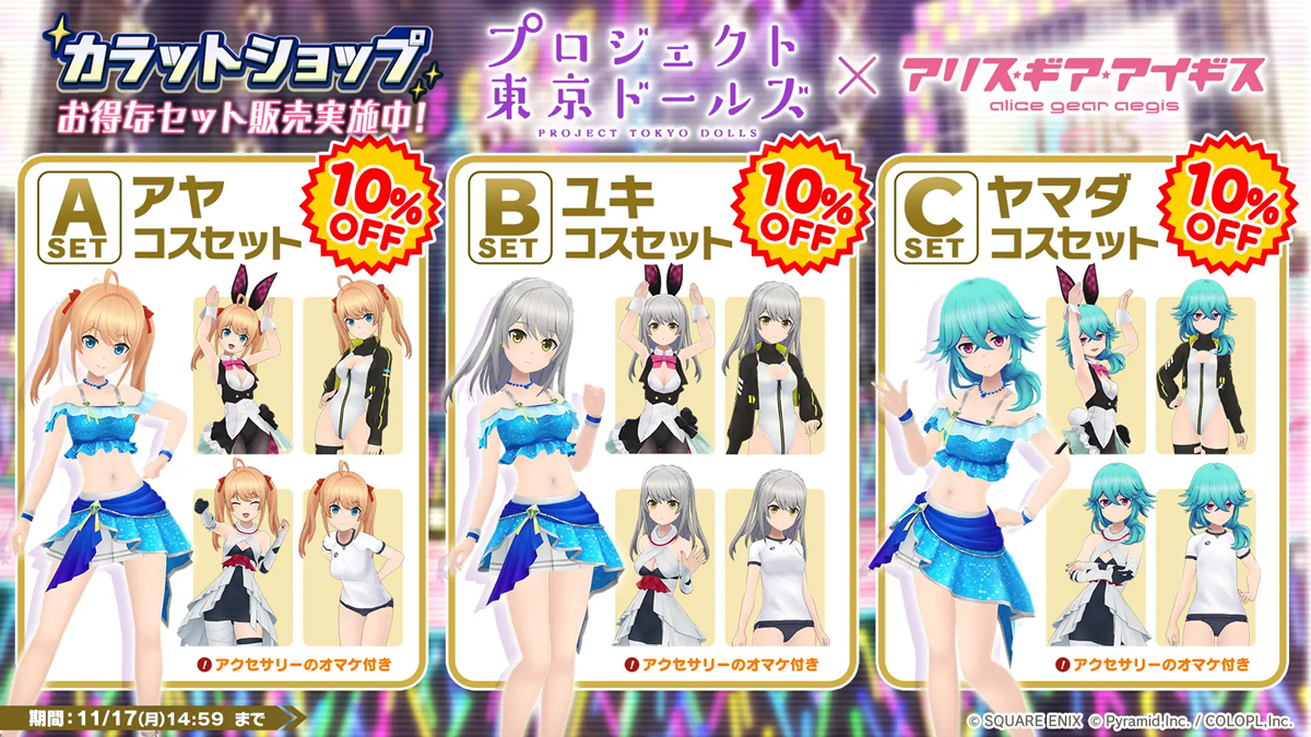 コロプラ<3668>は、スマートフォン向けゲーム『アリス・ギア・アイギス(以下、アリスギア)』にて、2025年10月28日(火)より『プロジェクト東京ドールズ(スクウェア・エニックス)』とのコラボイベントを開催している。