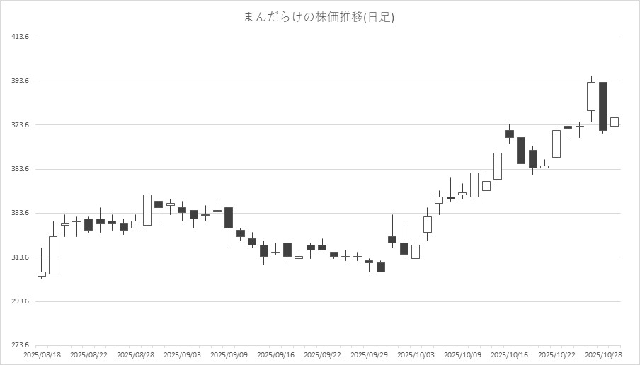最後に騰落ランキングを見ると、シリコンスタジオ<3907>やSEH&I<9478>、サンリオ<8136>、まんだらけ<2652>が値上がり率上位となり、モブキャストHD<3664>、IGポート<3791>、Aiming<3911>、SHIFT<3697>が値下がり率上位となった。