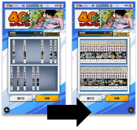 アイテム「コミックス」ごとに、イラストが解放されるキャラクターは異なるので全42巻のキャラクターがどんなコマに切り替わるのか、アイテム「コミックス」を獲得して確かめよう!
