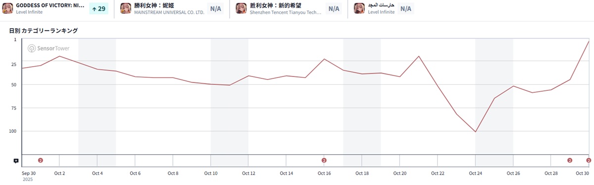 | 4 | 45 | ↑41 | 勝利の女神:NIKKE | Level Infinite |