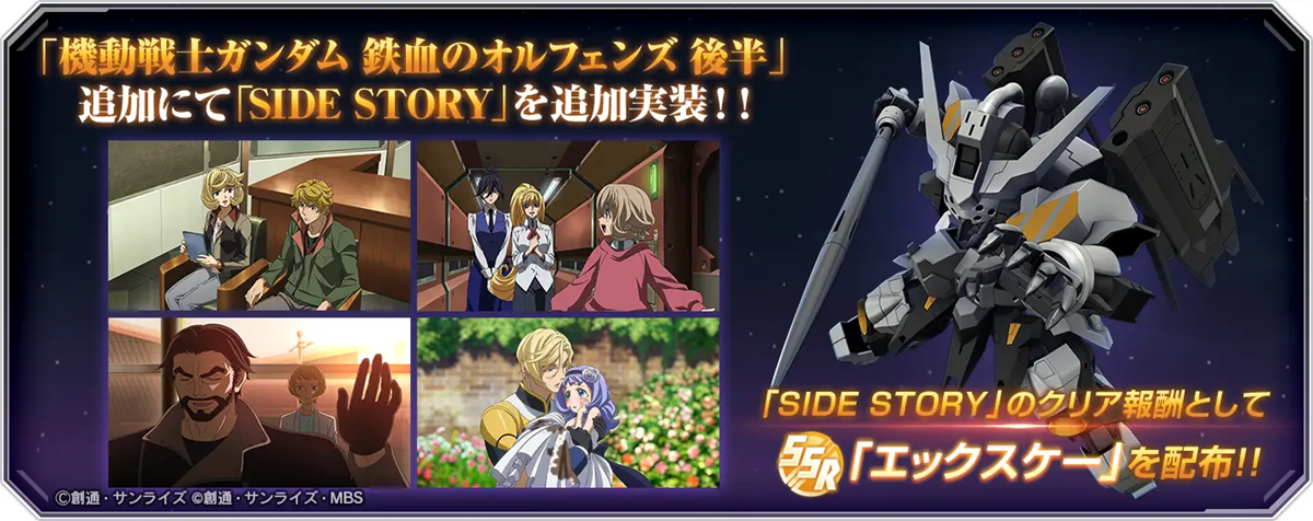 また、あわせて「機動戦士ガンダム 鉄血のオルフェンズ」に登場したキャラクターにまつわる物語を描いた「SIDE STORY」も実装。