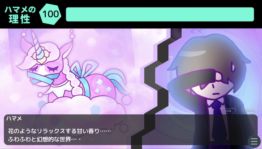 怪異と会話してヒントを得るたびに、怪異から誘惑されたり幻覚を見せられたりする。長く会話を続けると理性ゲージが減り、主人公の様子がおかしくなっていくため、理性が尽きるまでヒントを得る「チキンレース」のようなゲーム性が楽しめる。理性が尽きた時のバリエーション豊かなBADENDも用意されている。