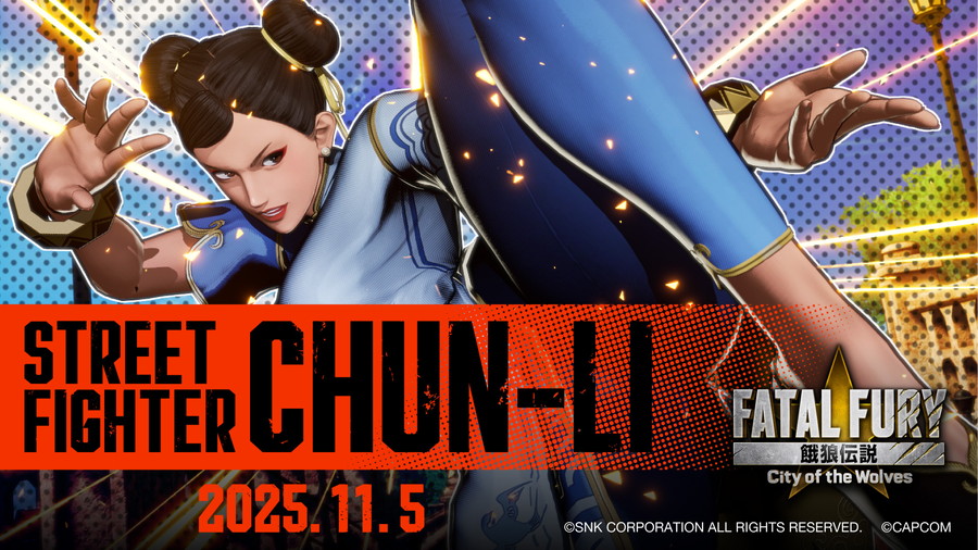 SNKは、対戦格闘ゲーム『餓狼伝説 City of the Wolves』において、『ストリートファイター』とのコラボキャラクター「春麗」を2025年11月5日に配信する。それに先立ち、「春麗」の配信を記念し、世界的な人気アニメーター大張正己氏によるアニメーショントレーラーも公開中である。