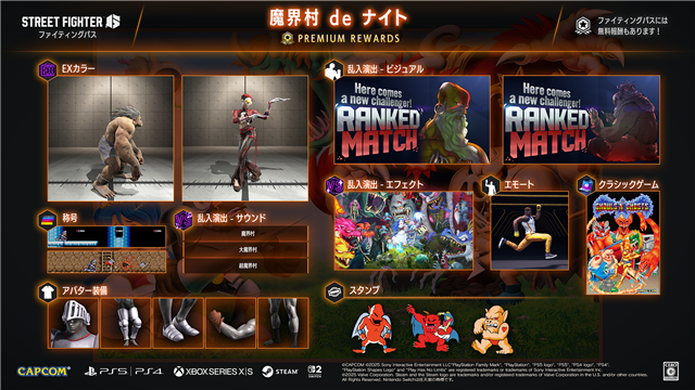 カプコン<9697>は、『ストリートファイター6』において、「魔界村」シリーズをテーマとした「魔界村 de ナイト」ファイティングパスを本日11月4日8:00より配信したことを発表した。