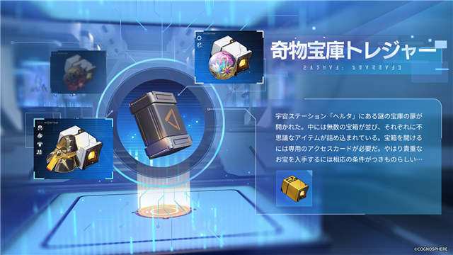 宇宙ステーション「ヘルタ」にある謎の宝庫の扉が開かれた。中には無数の宝箱が並び、それぞれに不思議なアイテムが詰め込まれている。宝箱を開けるには専用のアクセスカードが必要だが、やはり貴重なお宝を入手するには相応の条件がつきものようで……?
