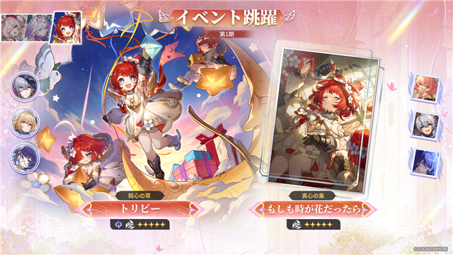 11月5日Ver.3.7アップデート後より、イベント跳躍「銘心の萃」と「真心の集」も開催!期間中「銘心の萃」にて、限定星5キャラクター「ヒアンシー」(CV:羊宮妃那)、「キャストリス」(CV:斎藤千和)、「トリビー」(CV:遠野ひかる)が再登場する。また再び入手できるチャンス!