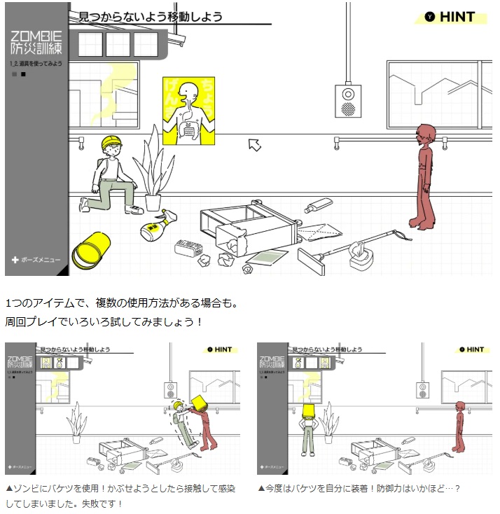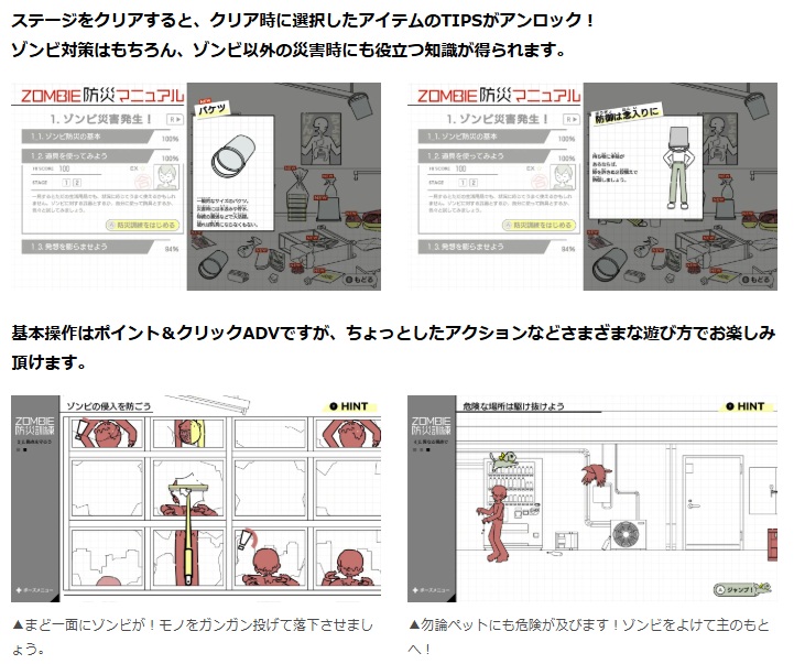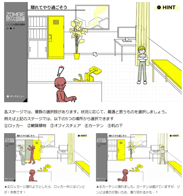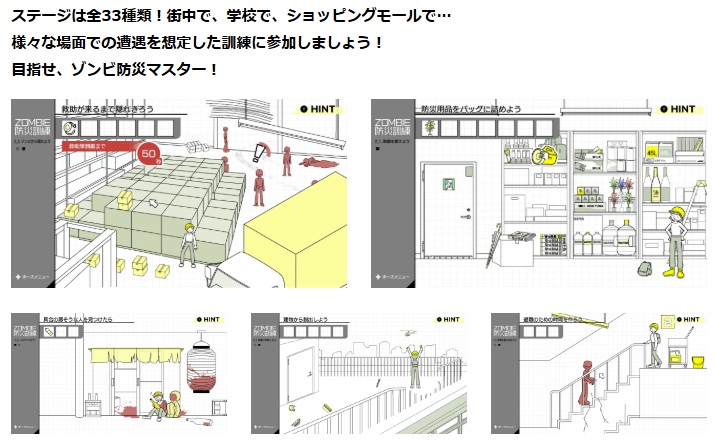 本作では、プレイヤーは様々なシチュエーションを想定した防災訓練に参加し、ゾンビから身を守るための防災スキルをゲーム感覚で身につけることができる。