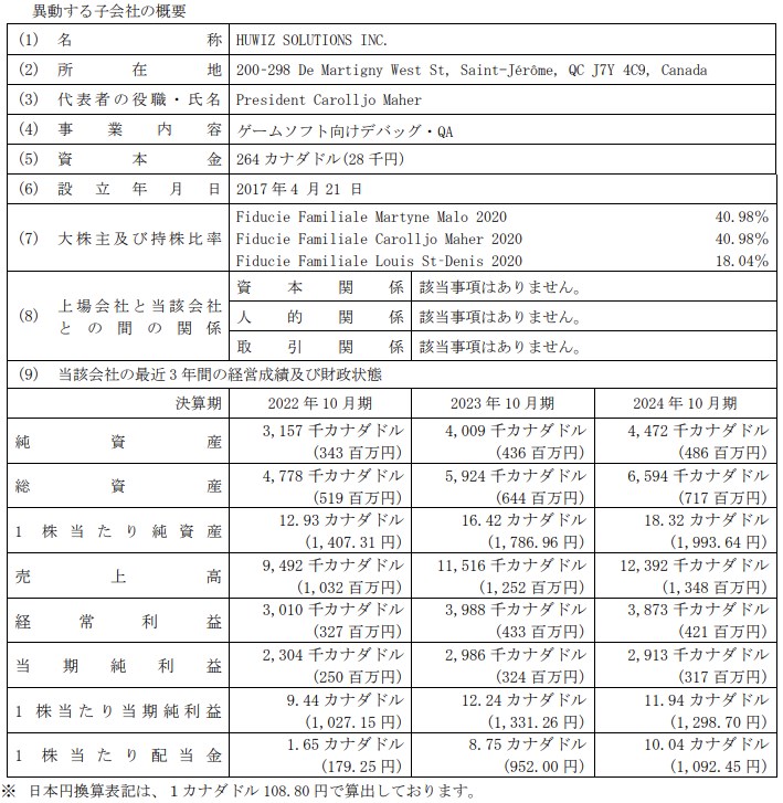 デジタルハーツHD、ゲームソフト向けデバッグ・QAなどを手掛けるカナダのHUWIZ SOLUTIONSを11月20日付で買収 取得価額は約18億円