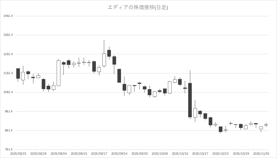 アニメやホビーなどその他コンテンツ関連銘柄は、エディア<3935>、フリュー<6238>、ブシロード<7803>が高く、タカラトミー<7867>、サンリオ<8136>、東宝<9602>、KADOKAWA<9468>、IGポート<3791>、GENDA<9166>、東映アニメ<4816>が安い。