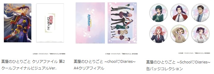 取扱商品:第2クールファイナルビジュアルVer.のグッズや、『薬屋のひとりごと ~School♡Diaries~』の描き下ろしを使用したグッズなど、作品の世界観にどっぷり浸ることのできる様々な商品を取り揃えている。