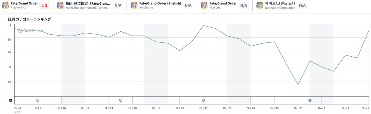 前日24位からトップ5入りを果たしたのは、FGO PROJECTの『Fate/Grand Order』だ。