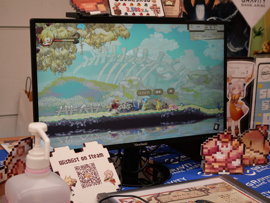 グラビティゲームアライズは、『Aeruta(アルタ)』をプレイアブル出展していた。パン屋経営を行いつつ、ダンジョン探索を行う2Dドット絵のハイブリッドRPGで、11月6日にリリースしたばかりだが、Steamのユーザーレビュー「非常に好評」となるなど、高く評価されている作品だ。このほか、『はしれへべれけ EX』『Light Odyssey』『ヌーギーズの大冒険』もプレイ可能だった。