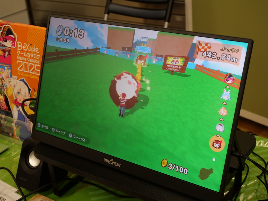 CCMC近くに陣取っていたビサイドは、『ホロライブごろごろマウンテン』を出展していた。お宝=ホロライブ所属タレントを転がし、お宝同士をくっつけて成長させながら島の頂上を目指す3Dアクション。1人で挑む大玉ころがしといった印象だが、大きなお宝をまっすぐ転がすことの意外な難易度や投げたり、自身がジャンプしたりなど奥深さを感じさせる内容だった。