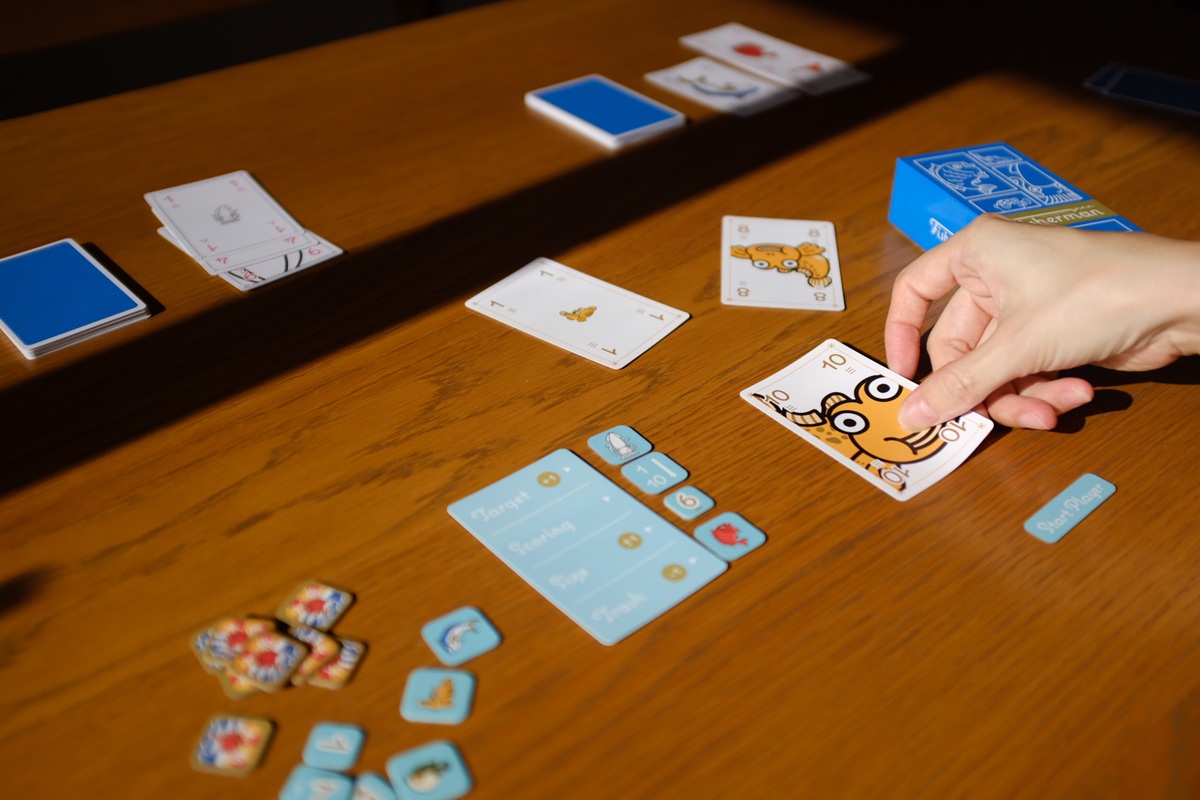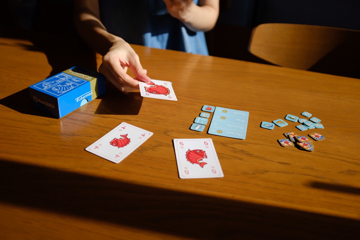 「Fisherman」は、釣り大会をテーマにしたカードゲーム。1人1枚ずつカードを出しあう「トリックテイキング」ゲームを進めながら、狙った魚を釣りましょう!