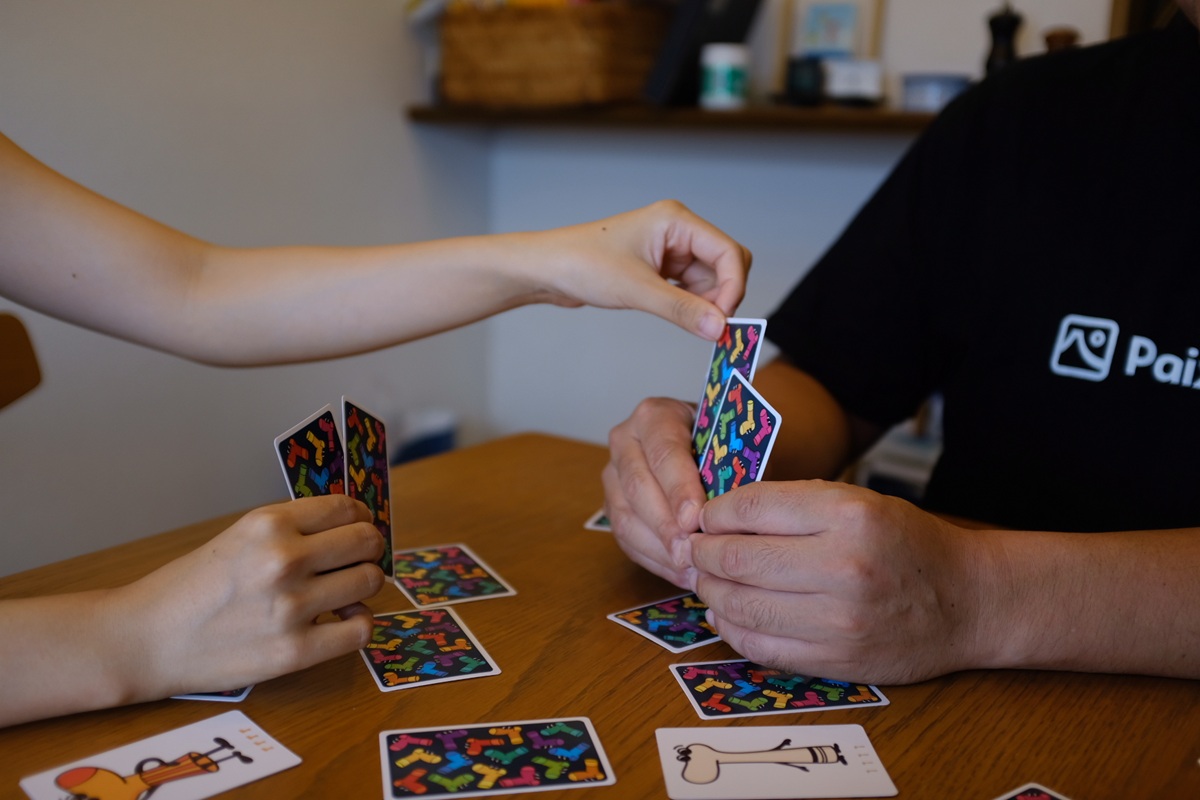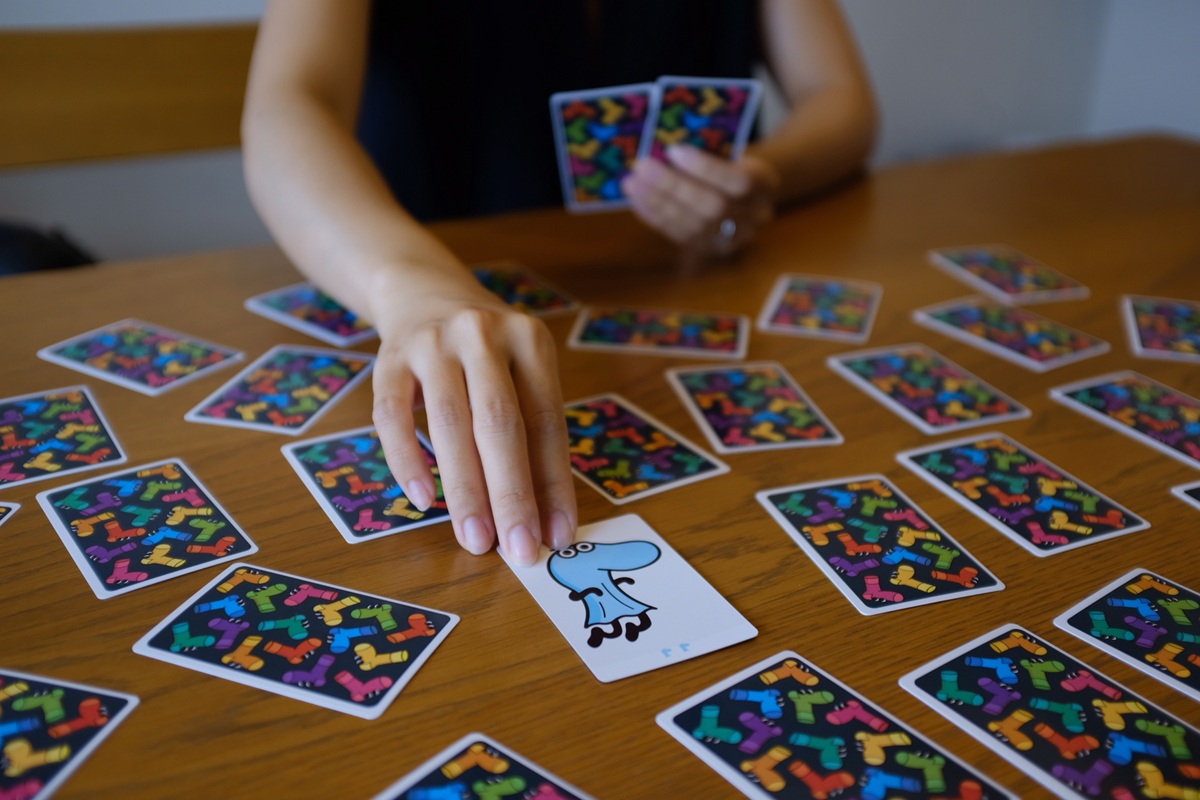 「くつした」のペアをたくさんつくろう!「くつしたカード」をめくったり、他の人の手札を引いたりして、誰よりも多くのペアをつくった人が勝ち。神経衰弱のように記憶力を競いつつ、ババ抜きのクライマックスのようなハラハラ感を何度も味わえる。子どもから大人まで一緒になって楽しめるカードゲーム。
